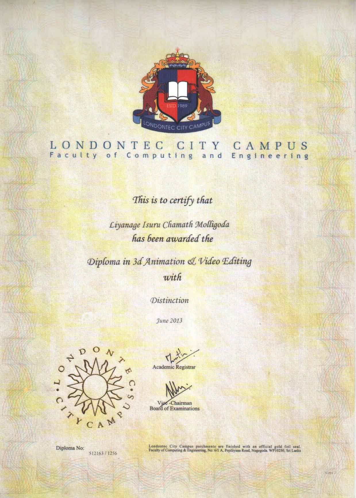 Completed the Diploma in 3D Animation & Video Editing in 2013 - Londontec City Campus.